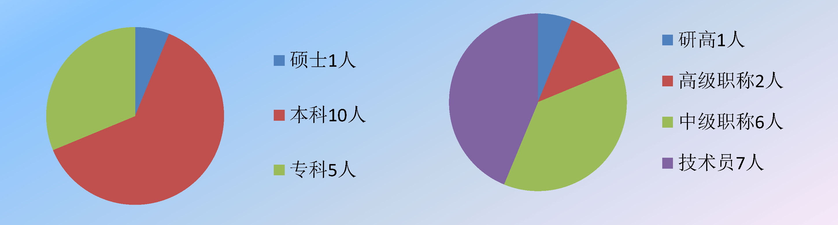 公司拥有市级技术中心,现有员工16人,具有硕士文化水平1人,本科文化水平10人;具用研究员高级工程师职称1人、高级工程师职称2人、工程师职称6人。
