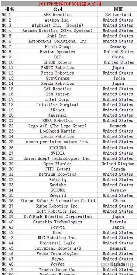 最大的问题是,我们偏向于“搬”,而不倾向于“研”。拿贵圈最为钟爱的机器人产业来看,2017年机器人商业评论(RBR)评出的机器人公司TOP 50榜单中,美国公司仍然占据绝对主导地位,同时有大约1/4的1年左右新创公司入榜,中国大陆上榜的公司仅有大疆和新松两家,身影实在略显单薄。
