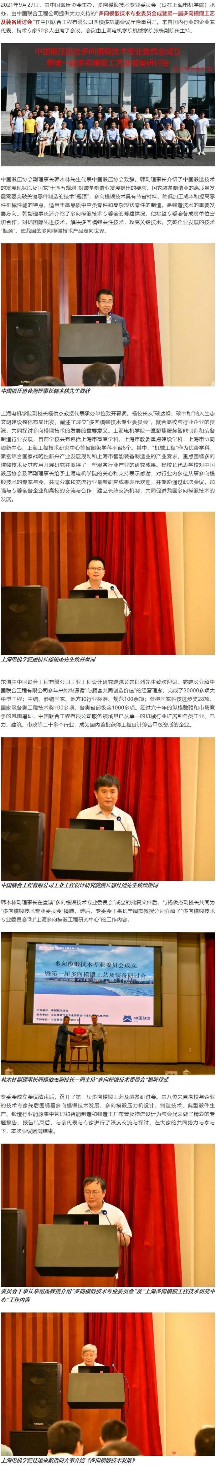 2021年9月27日,由 主办,多向模锻技术专业委员会(设在上海电机学院)承办,由中国联合工程公司提供大力支持的“多向模锻技术专业委员会成暨第一届多向模锻工艺及装备研讨会”在中国联合工程有限公司四楼多功能会议厅隆重召开。
