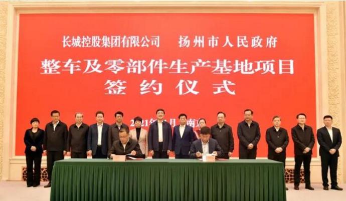 11月30日,从微信号“扬州发布”获悉,扬州与长城控股集团整车及零部件生产基地项目签约仪式已于11月29日在南京举行。