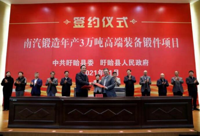 11月29日,南京汽车锻造有限公司新生产基地落户盱眙经济开发区签约仪式在盱眙县政府举行。
