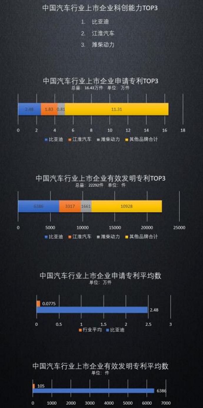中国汽车行业专利数榜单发布,比亚迪超行业均值60倍