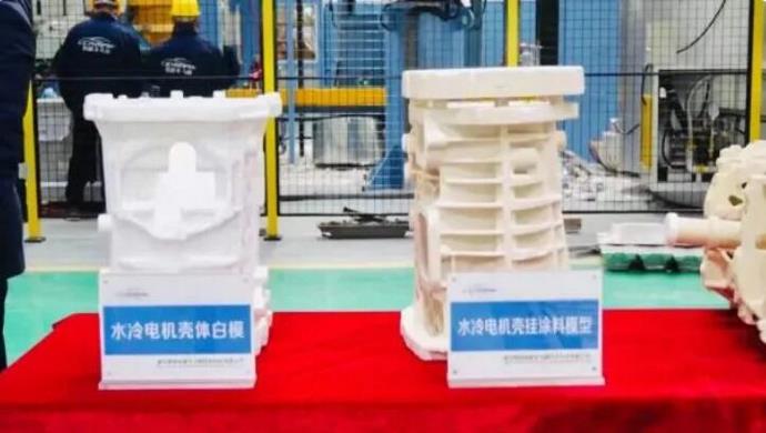 公司常务副总经理梁涛说:“有两条德国最先进的车马赫消失模生产线,每年可生产260—300万套新能源汽车纯电、混合动力的电机壳以及混合动力的发动机缸盖。全部达产预计年产值会达到38—50亿元。”
