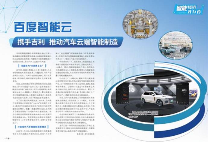 目前,吉利与百度智能云均积极探索未来智能制造新模式,布局未来工厂3.0模式。双方将联合探索打造吉利专有的百度智能云+人工智能平台,构建完整的吉利大数据生态环境,打造出完整的集智能化技术平台、业务平台、产业场景应用于一体的吉利创新安全平台。