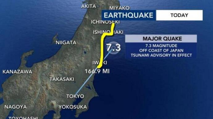 3月16日22时36分,日本本州东岸近海发生7.4级地震,震源深度10千米。震中位于福岛县沿海,地震发生后东北新干线脱轨,东电辖区内还发生了超过200万户家庭的大规模停电事故。据日本气象厅称,预计有高达1米的海啸风险。