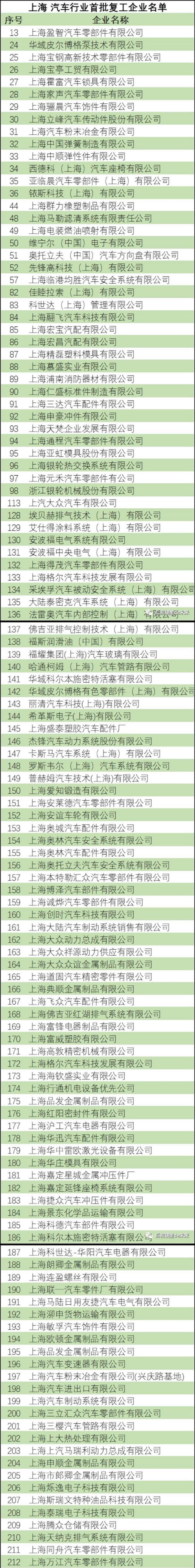 2022年4月16日,一份上海“第一批重点企业‘白名单’”开始流传。这份名单上共有666家企业,主要包括整车制造商企业、汽车零部件配套企业、集成电路相关企业、装备制造、生物医药、防疫物资等。其中,与汽车相关的企业249家。整车制造商的名单里有上海大众、上汽通用、特斯拉。以下是汽车行业首批复工企业名单: