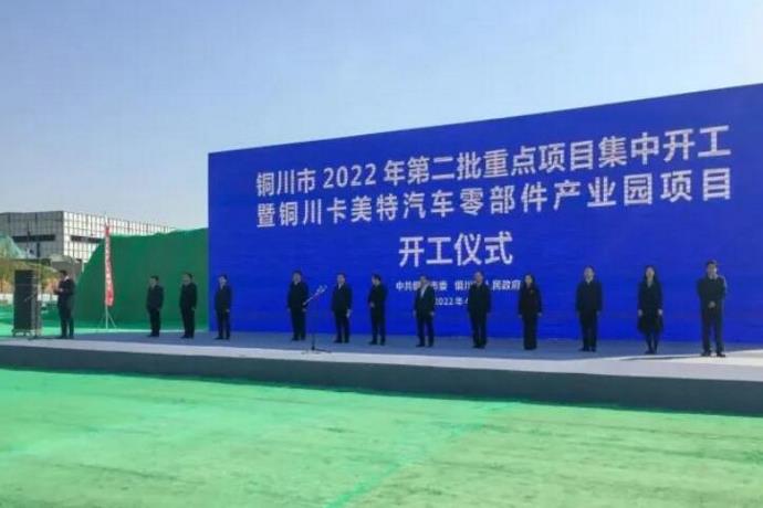 4月19日上午,铜川市2022年第二批重点项目集中开工暨铜川卡美特汽车零部件产业园项目开工仪式,在董家河循环经济产业园铜川卡美特汽车零部件产业园一期标准化厂房项目现场举行。