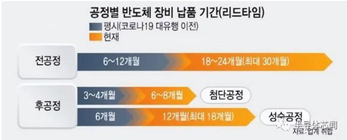 据etnews报道,与往常相比,制造半导体所需的先进部件的交货期(交货时间)延迟了两倍以上。出现这种情况的原因是对半导体设备的需求猛增,造成了零部件供应的瓶颈。由于原材料成本上涨和设备半导体短缺,设备供应的恶性循环仍在继续。