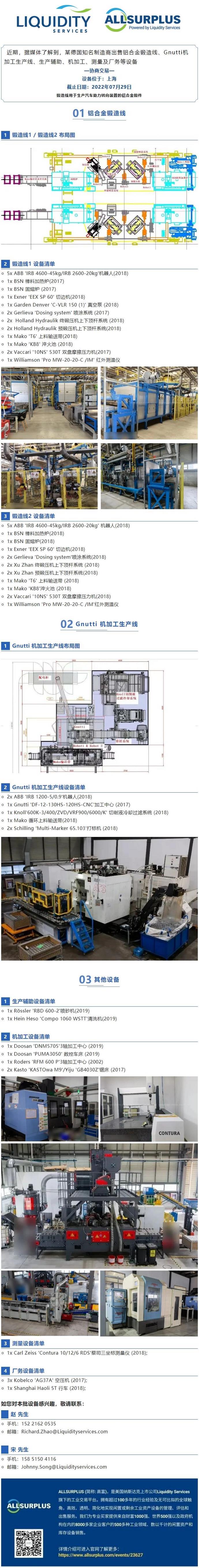 “机”不可失-关厂出售2条完整的铝合金锻造线等