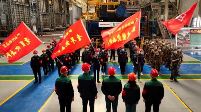 为此,伊莱特迅速组织党员突击队、共青团员突击队、技术保障突击队、质量保障突击队、后勤保障突击队、战狼突击队等多支队伍,集合精英力量,党员带头冲锋,干部群众紧紧围绕,精心筹划方案,精密安排流程,终于保质保量地完成了最关键的轧制工艺,不负党和国家的信任和嘱托。