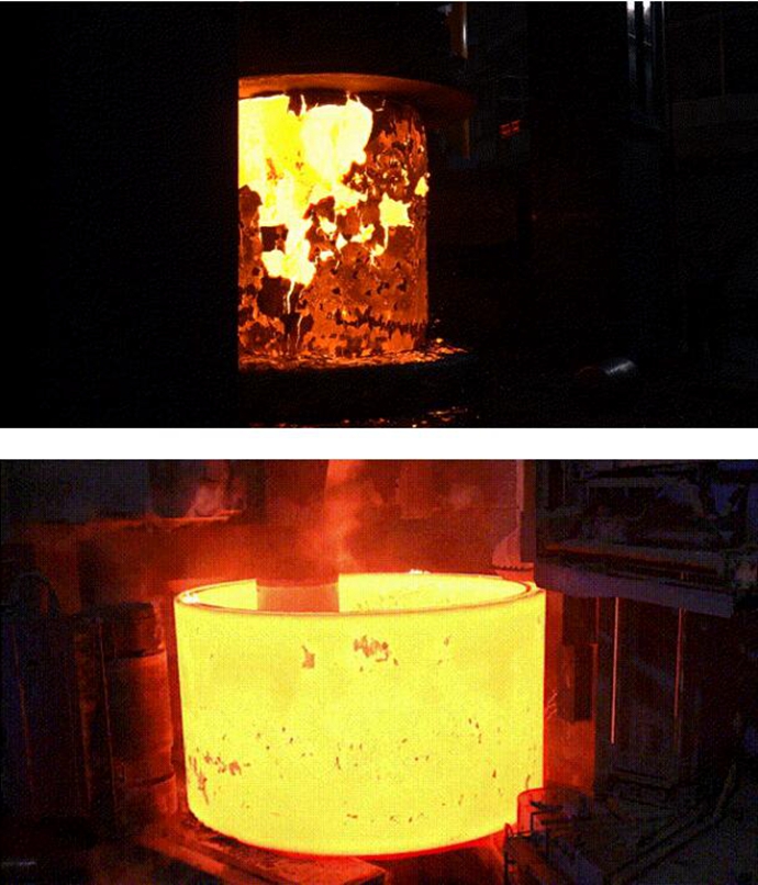 加氢反应器筒节的制造方式主要有两种,一种是全自由锻工艺,一种是整体轧制技术。两者相比,整体轧制技术不仅能减少锻造火次和降低锻造余量,极大地提高原材料利用率和产品生产效率,而且能使筒节的锻造流线连续完整,并与其圆周方向平行,筒节性能更优异。由于出色的性能,更短的交付周期,整体轧制筒节已经成为欧美压力容器锻件的主流制造方式,此前该类部件主要由意大利等少数国家提供。