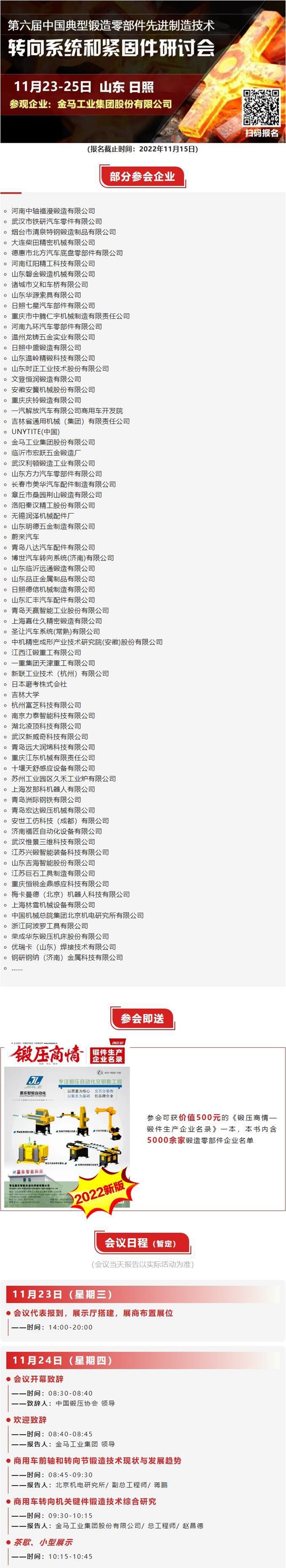 2022典型锻造零部件先进制造技术论坛—转向系统和紧固件专题会议宣布延期,重新定档2022年11月23-25日,在山东日照举办。