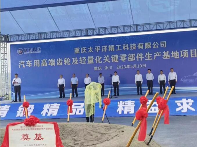 2023年5月19日,江苏太平洋精锻科技股份有限公司全资子公司重庆太平洋精工科技有限公司“汽车用高端齿轮及轻量化关键零部件生产基地项目”在重庆永川高新区正式开工建设。