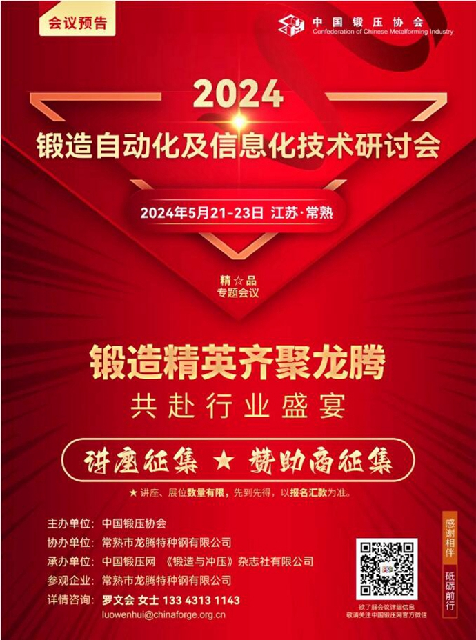 汽车及零部件产业是常熟培育发展20多年的支柱产业,已汇集整车、关键零部件、智能网联、验证测试于一体的较为完整的汽车及零部件全产业链。2024年5月21-23日,第九届锻造自动化及信息化技术研讨会将与行业同仁一起齐聚常熟,共赴盛宴!