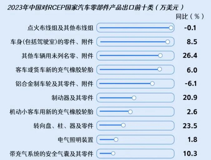 2023年我国对RCEP国家汽车零部件产品出口前十类,来源:中汽融媒