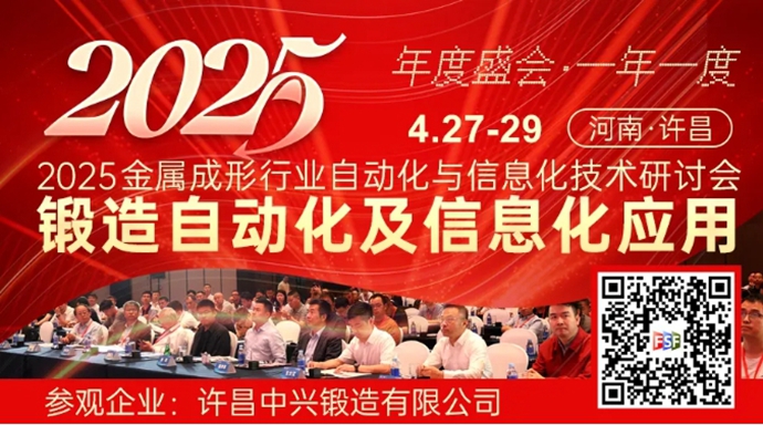 2025年4月27-29日, 将在河南许昌举办“2025锻造自动化及信息化应用技术研讨会”。截至4月21日10:00,已有100余家锻造行业优秀企业确认出席。