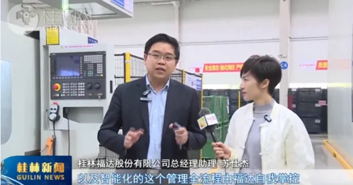 桂林福达股份有限公司总经理助理 苏仕杰:整个的超级工厂,在产线的建设完全是由我们福达自主设计并且掌握了自己的知识产权,从设备的选型到产线的布局到自动化的加工,以及智能化的这个管理全流程由福达自我掌控。