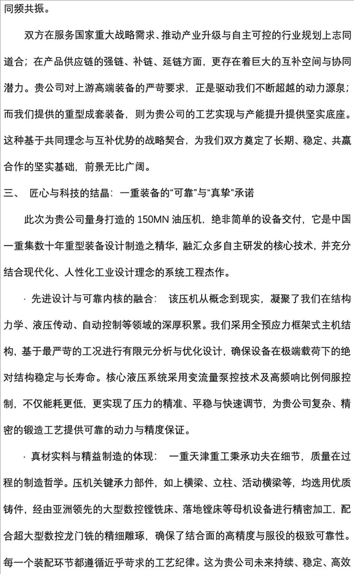 中国一重将始终秉承“用户满意、用户成功”的发展理念,坚定不移践行创新驱动发展战略,努力推进科技创新和产业创新深度融合,坚持聚焦主业、做强实业、做精专业,努力为高质量现代化产业体系建设贡献中国一重力量。