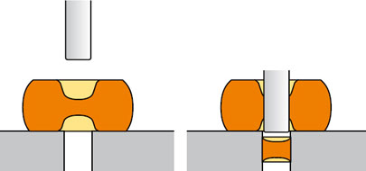 挤压 挤压是一种单工位或多工位生产工艺,既可用于生产空心零件也可用于生成实心零件。该工艺是根据材料流动的方向加以区别分类:正挤压、反挤压或侧向挤压。工件通过模具上的开口,使横截面缩减兵形成工件的形状。
