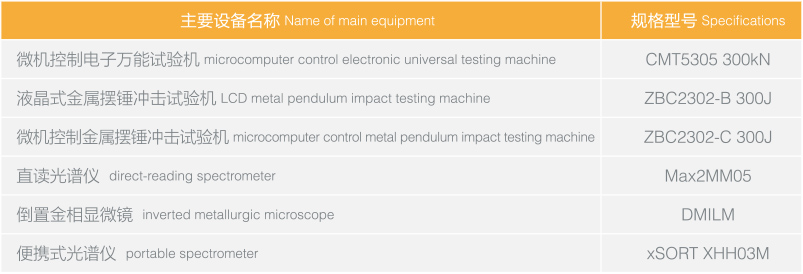理化实验室:设备齐全,可实现常低温拉伸冲击试验、化学成分检测、金相组织、硬度等检测。
