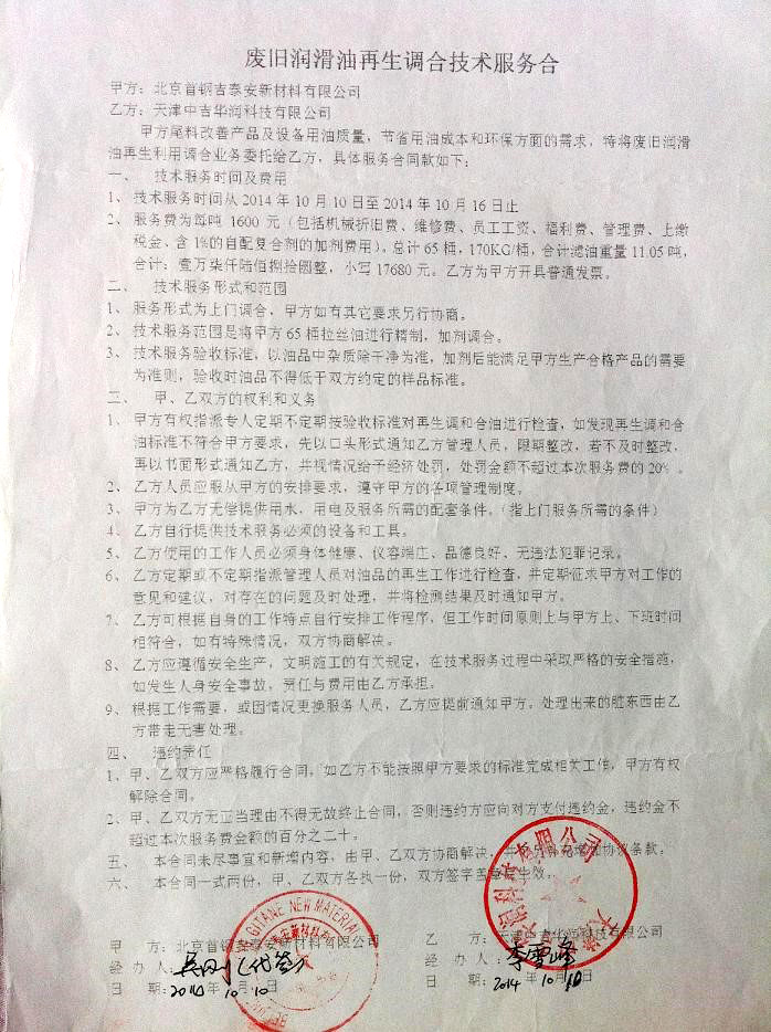 天津中吉佳润科技有限公司依托解放军后勤工程学院专业技术团队为后盾,聘请多名资深专家为技术顾问,专注于工业企业润滑油循环利用和再生精制处理。首创了“现场深度再生三步走工艺”,相对于传统的处理方式,具有适用范围广(废油/废液)、操做灵活(上门净化再生),性价比高(仅有新油成本10%),绿色环保、处理品质好(再生油技术指标达到或接近新油)等众多优点。得到了广大工业企业一致认可。