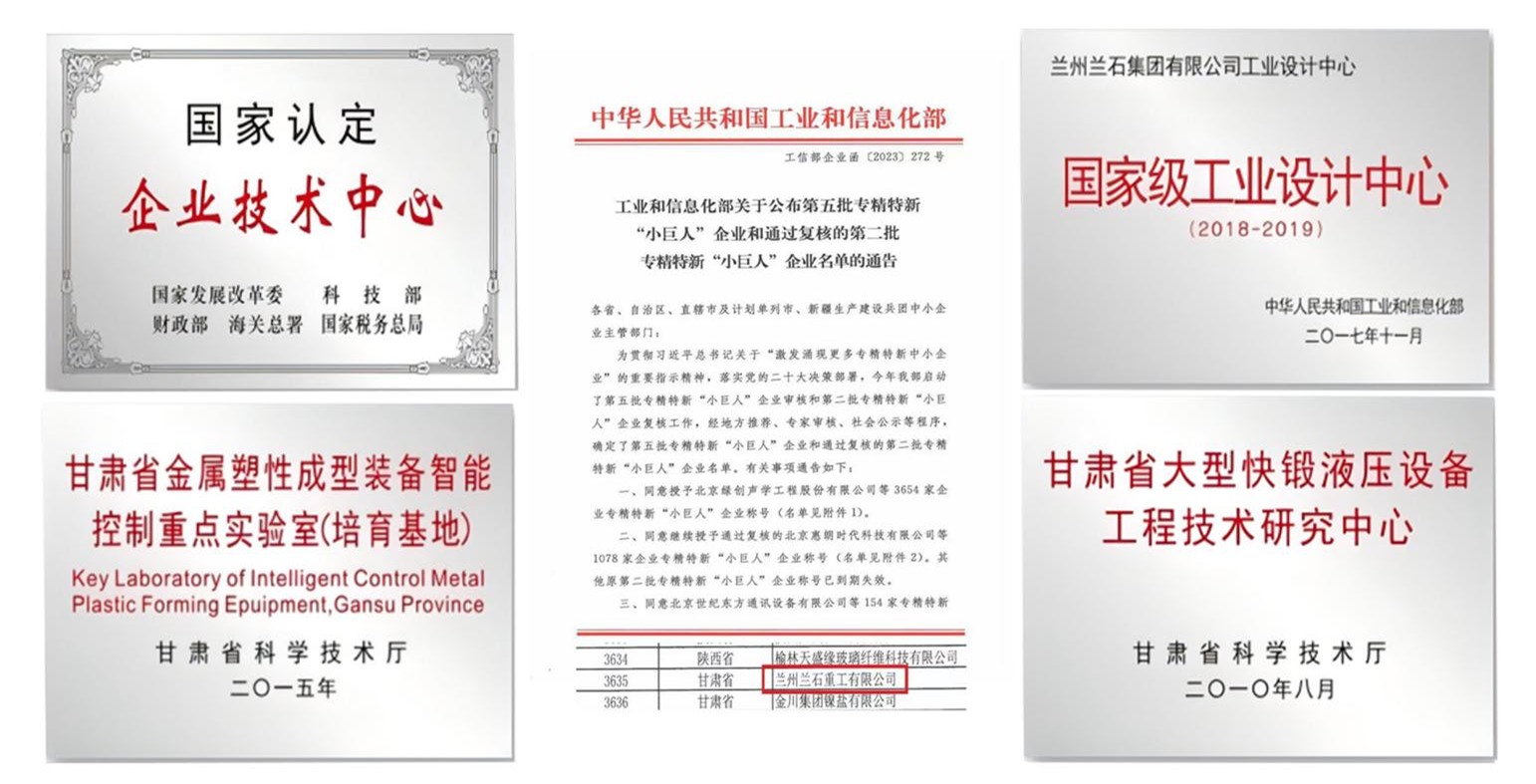 公司累计获批专利120多项,知识产权的应用形成了压延类产品独有技术,先后承担完成“十一五”国家科技支撑计划项目、“国家产业基础再造和制造业高质量发展专项”项目、“卡脖子”项目2项,甘肃省科技重大专项5项、甘肃省科技攻关项目及重大新产品研制项目等30余项。获得国家科技进步二等奖、国家级新产品奖、教育部科技进步一等奖、甘肃省科技进步一等奖、甘肃省科技进步二等奖、省级以上新产品新技术奖,其他科技奖项60余项;科研成果具有当代国际先进水平,填补10余项国内空白,设计制造的系列快锻液压机组被评为甘肃省名牌产品。