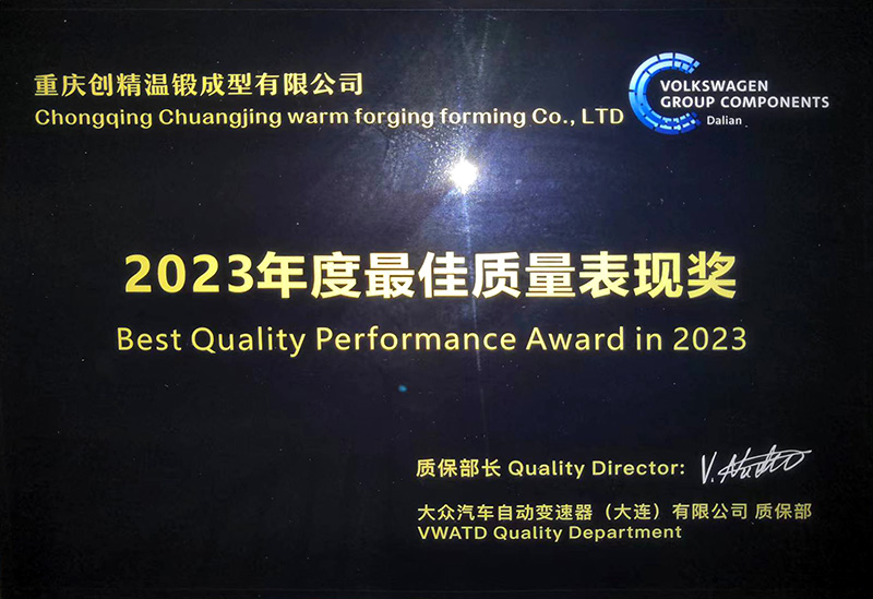 荣获大众汽车自动变速器(大连)有限公司质保部2023年度“最佳质量表现奖”。