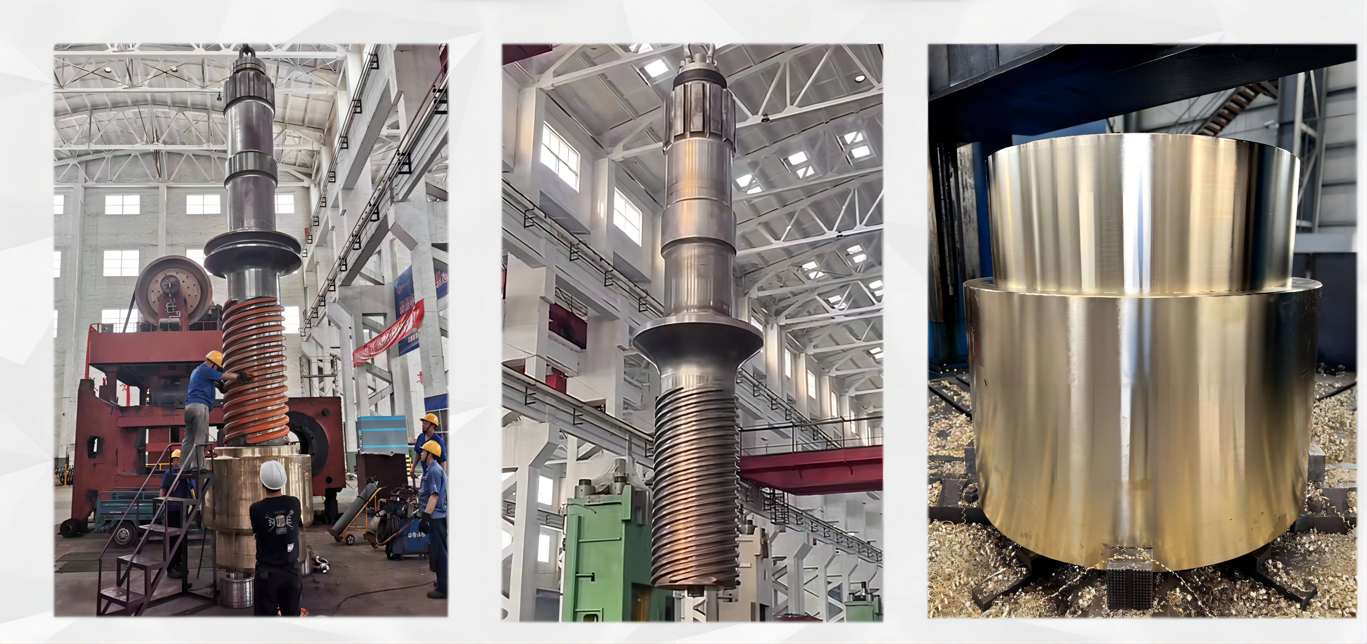 2023年6月,中锻智能装备设计院成功研制了世界上最大的355MN螺旋压力机核心零部件螺杆和螺母。