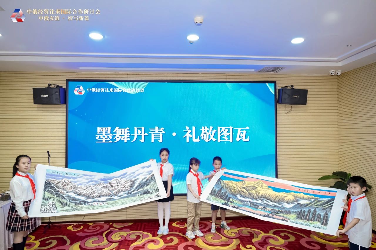 “墨舞丹青・礼敬图瓦” 文化交流环节将现场氛围推向了新的高潮。书法、绘画等中国传统艺术作品与图瓦文化艺术相互交融、相互辉映,展现出两国文化的独特魅力与深厚底蕴。王启龙董事长在欣赏俄方艺术作品的同时,也向俄方代表介绍了中国传统艺术所蕴含的文化内涵,让彼此在文化交流中进一步加深了理解和信任。