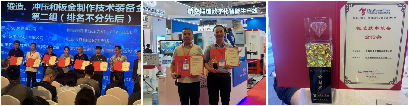 2025年6月19日,在中国国际金属成形展览会颁奖典礼上,无锡市盛宝嘉科技有限公司凭借其自主研发的“航空锻件自动化生产线”荣获锻造、冲压和钣金制作技术装备“金钻奖”。该奖项由 设立,旨在表彰在工艺精度、能效提升及智能化水平方面具有突破性创新的行业标杆装备。