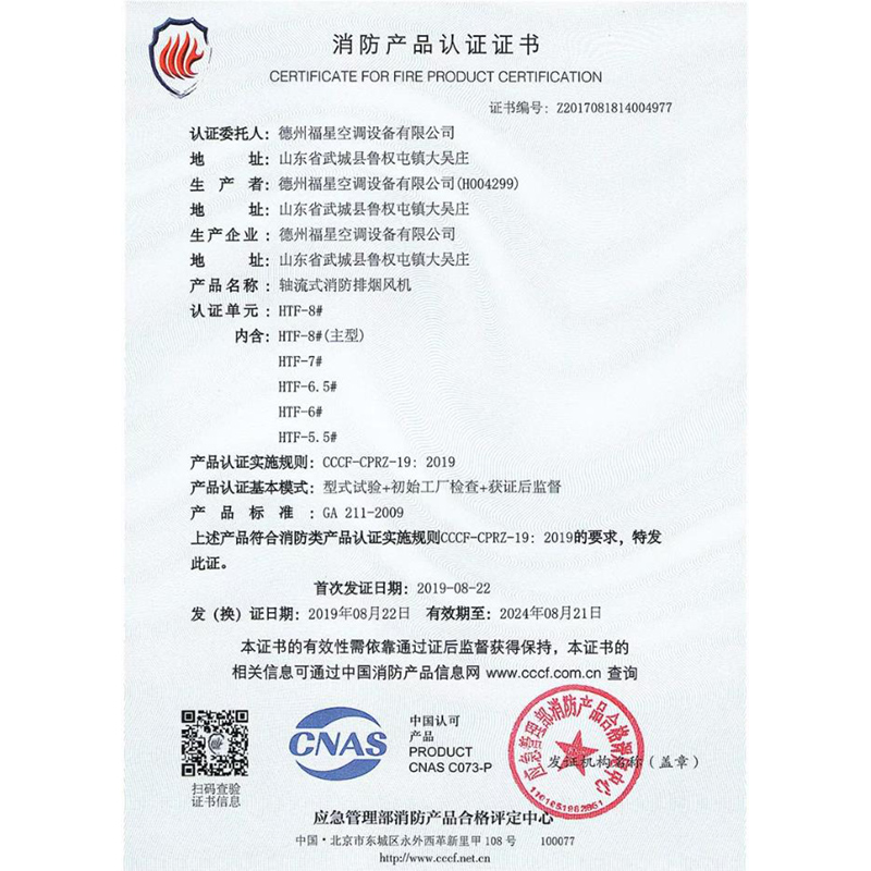 轴流式消防排烟风机-消防产品认证证书