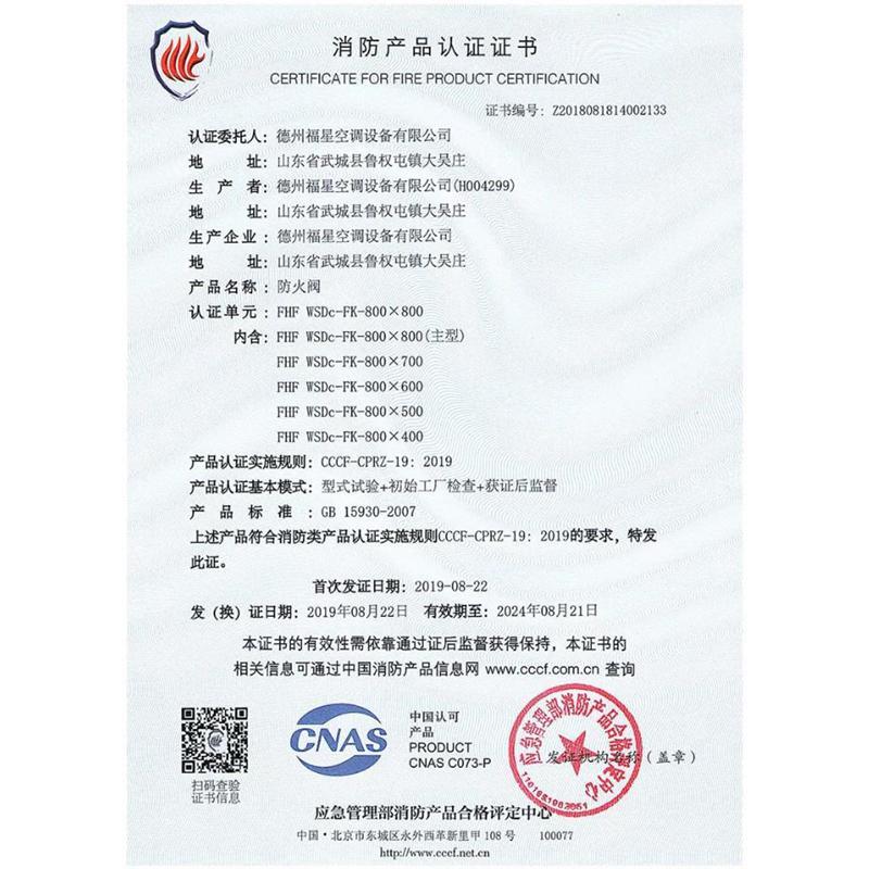 防火阀-消防产品认证证书