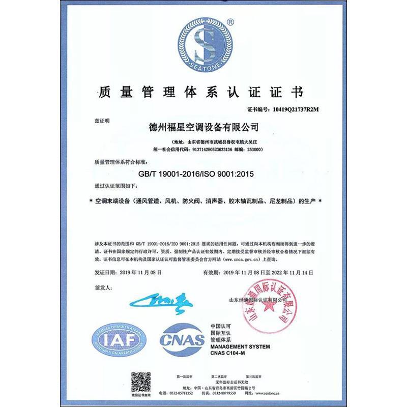 GB/T 19001质量管理体系认证证书