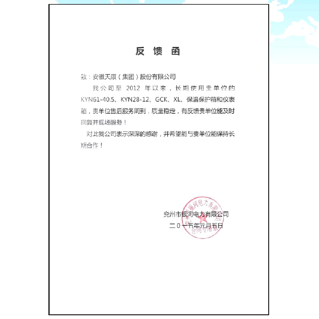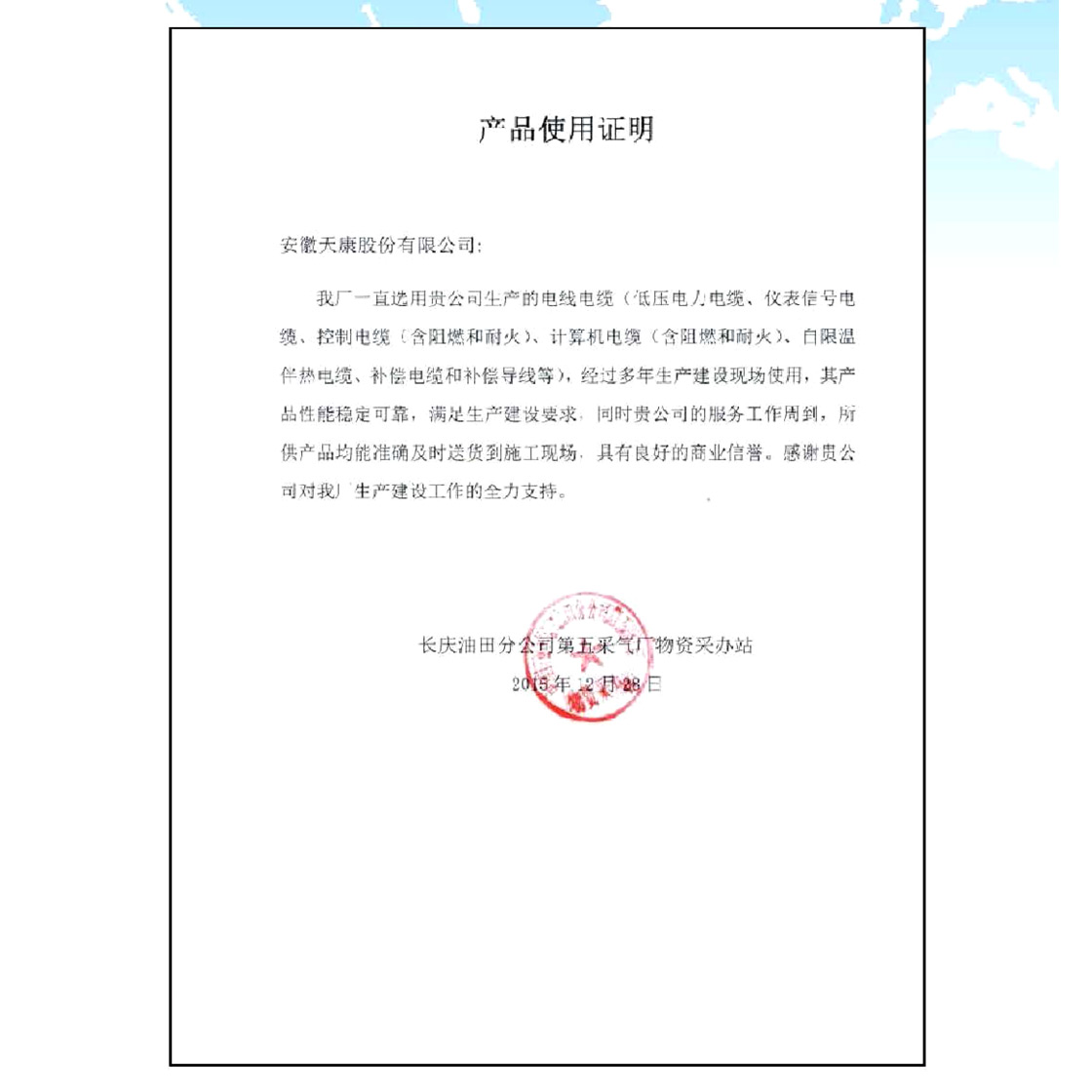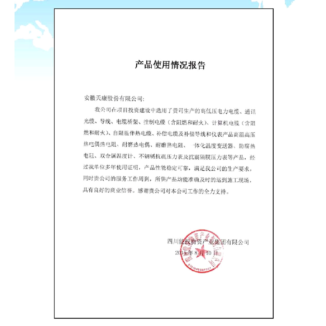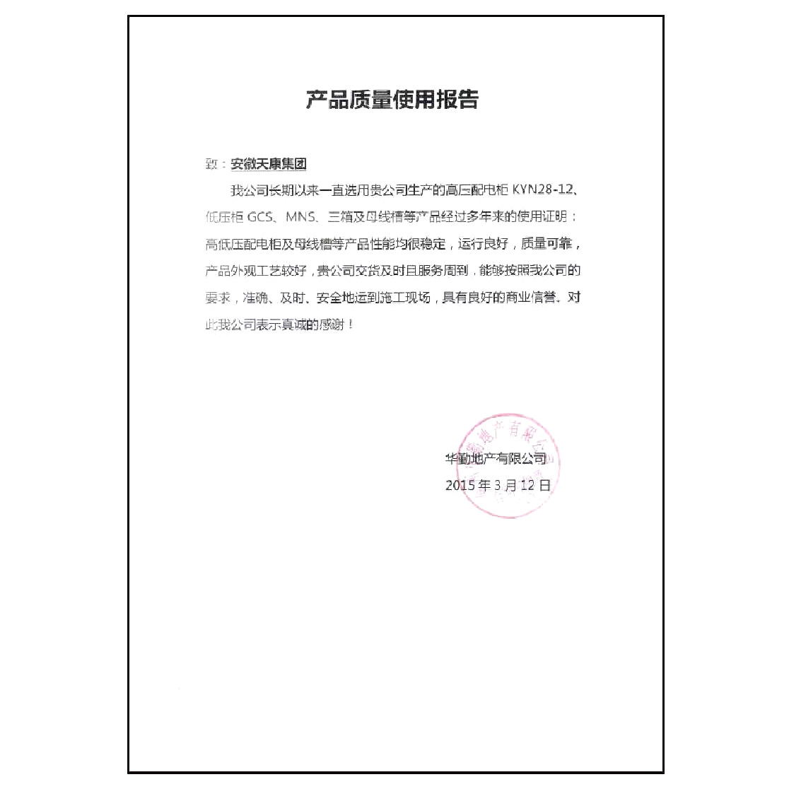 中国华电集团供应商证书
