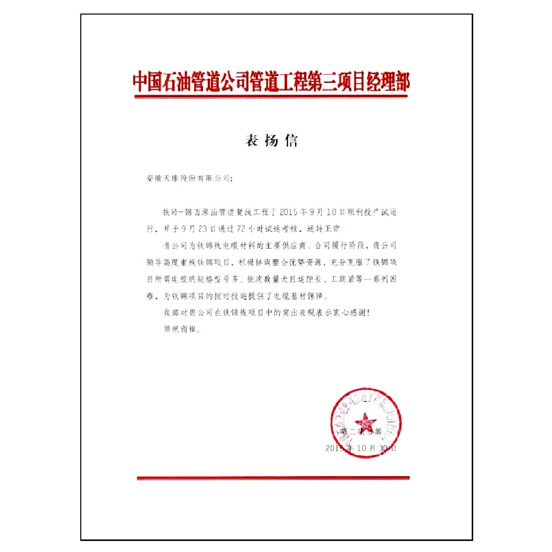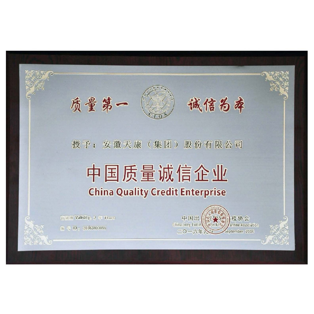 全国质量信用先进企业证书