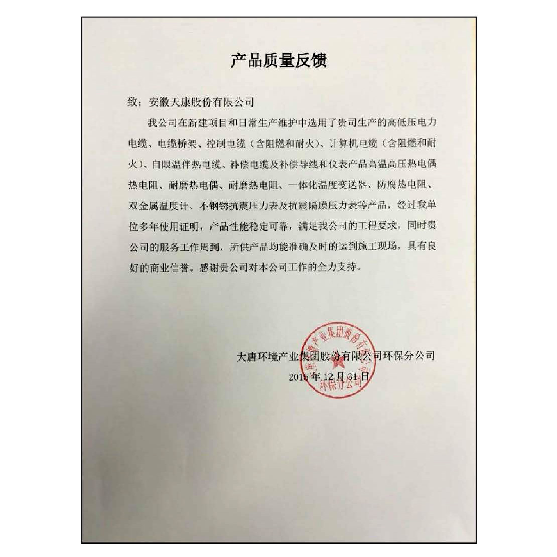 TLC产品认证证书