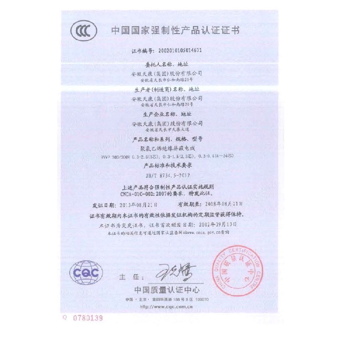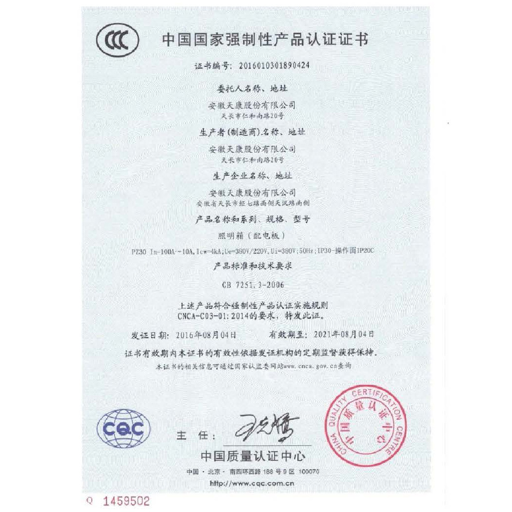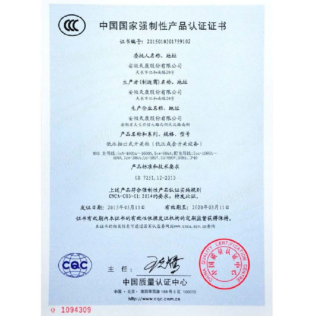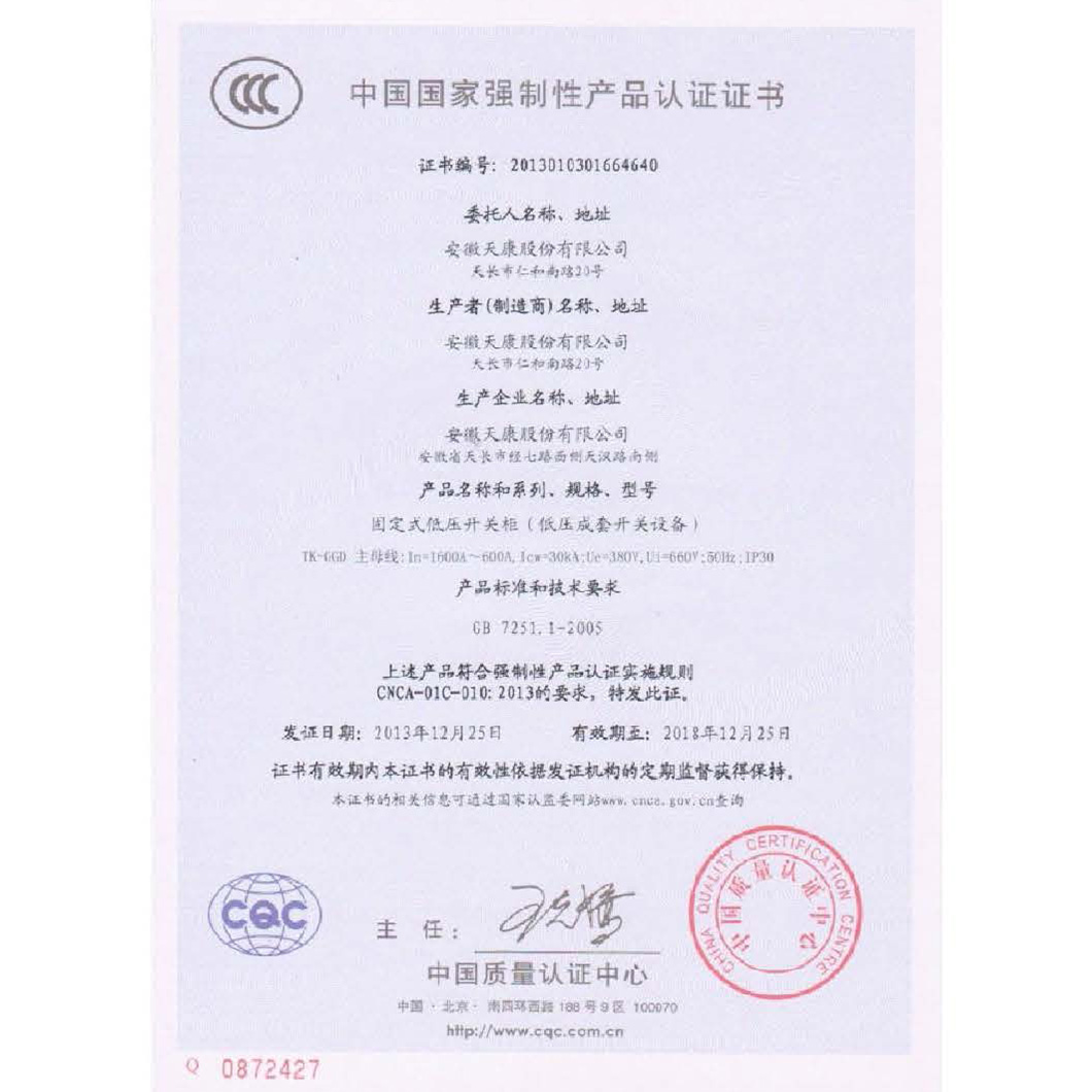 中国国家强制性产品认证证书
