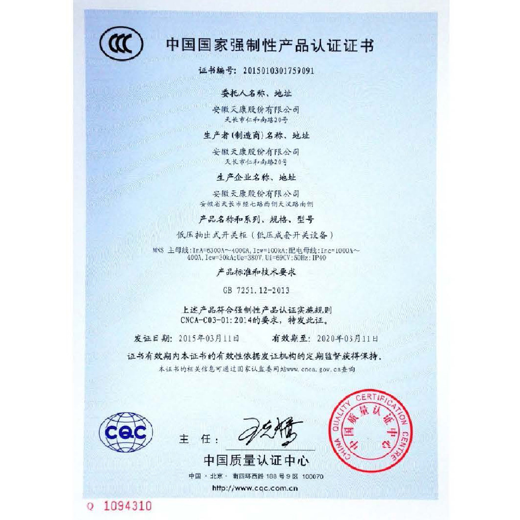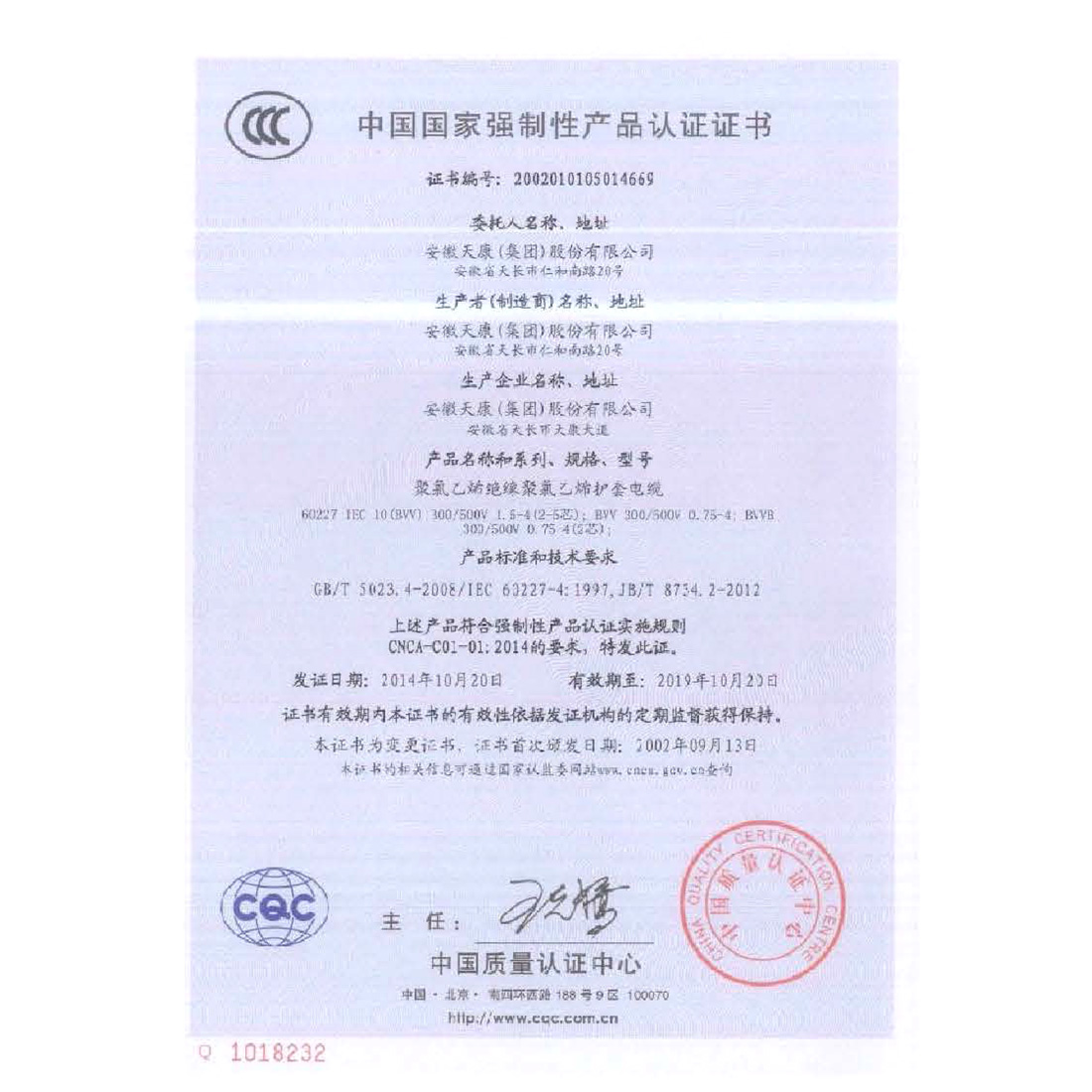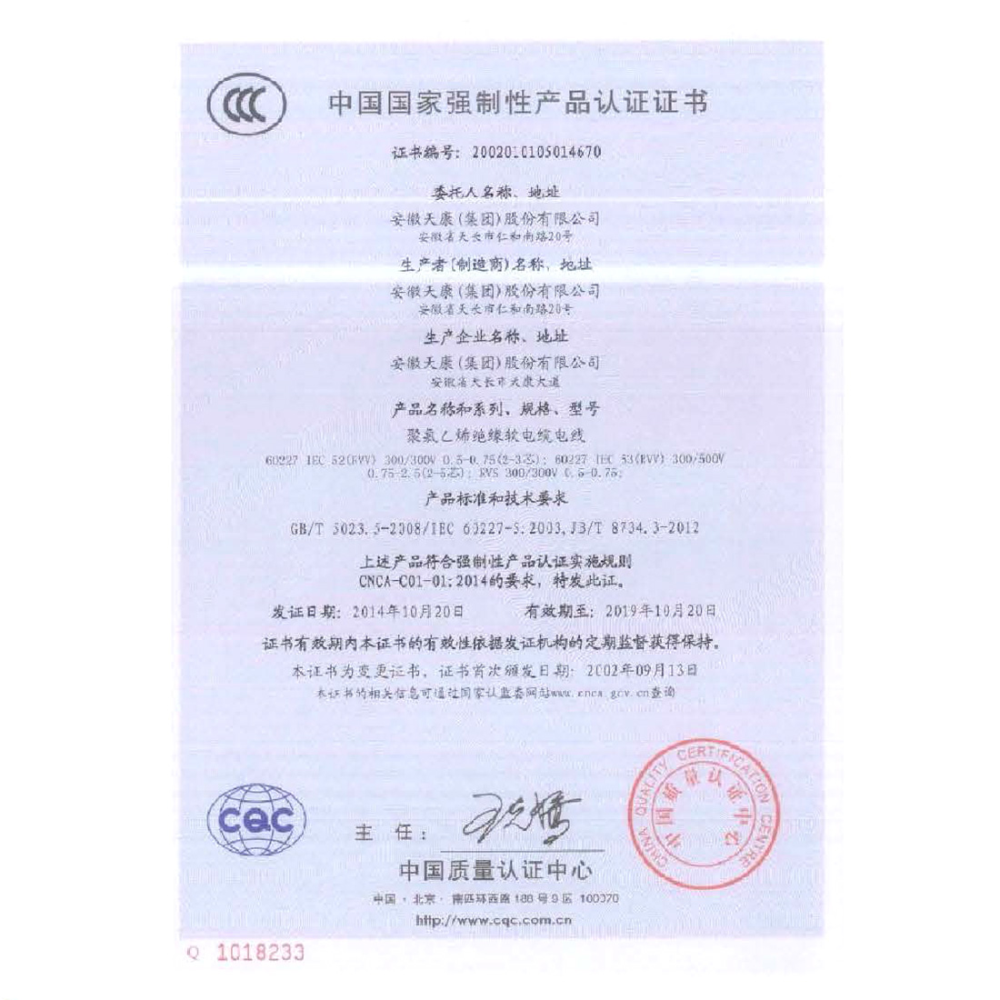 中国国家强制性产品认证证书