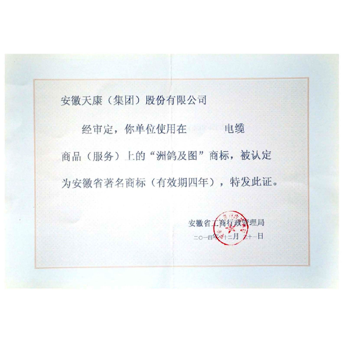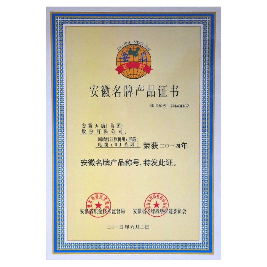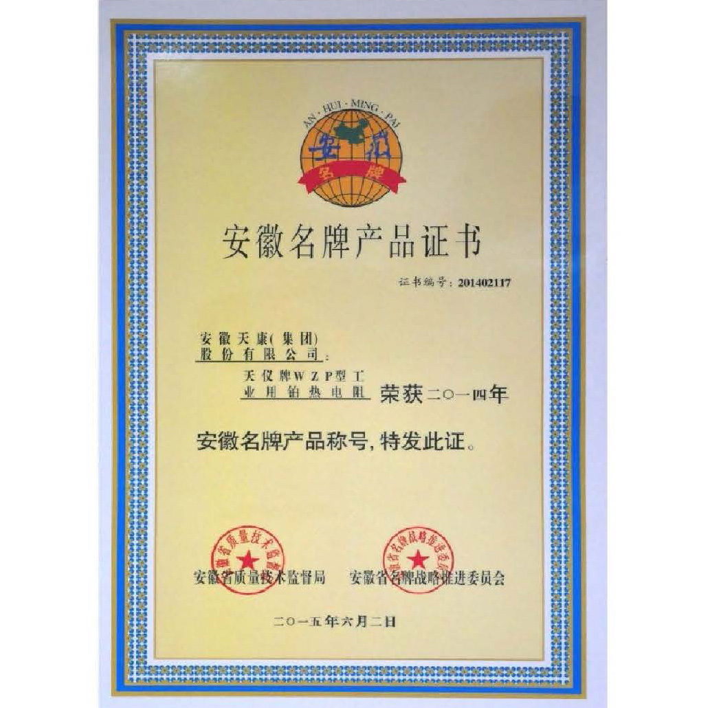 安徽名牌产品证书