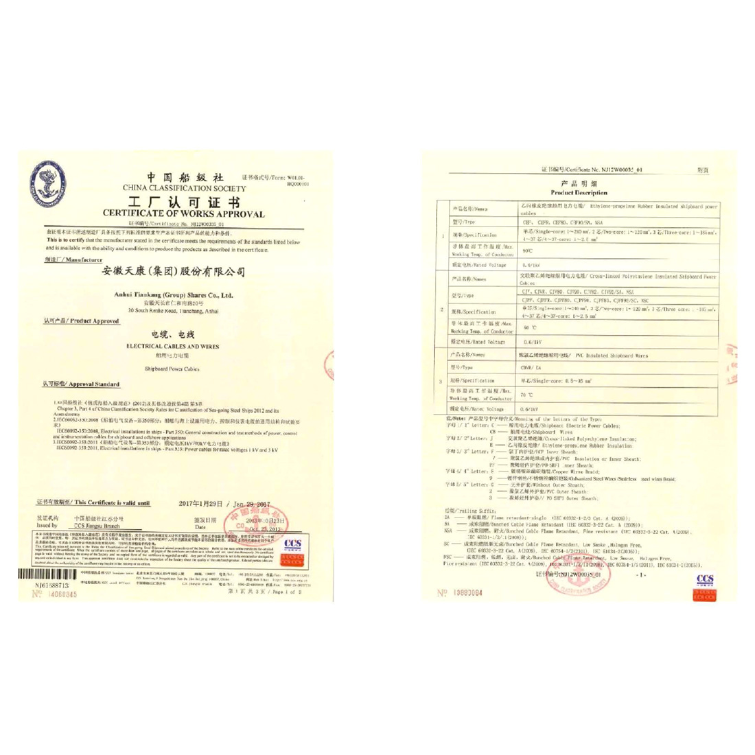 中国船级社工厂认可证书