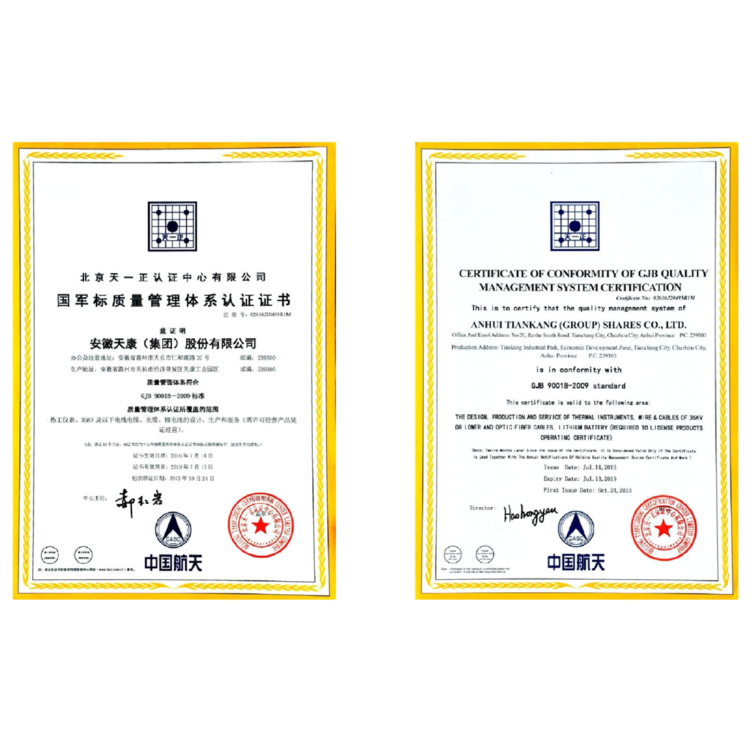 国军标质量管理体系认证证书
