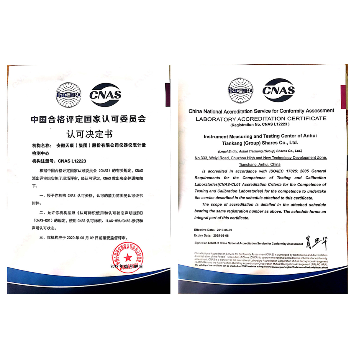 CNAS实验室认可证书