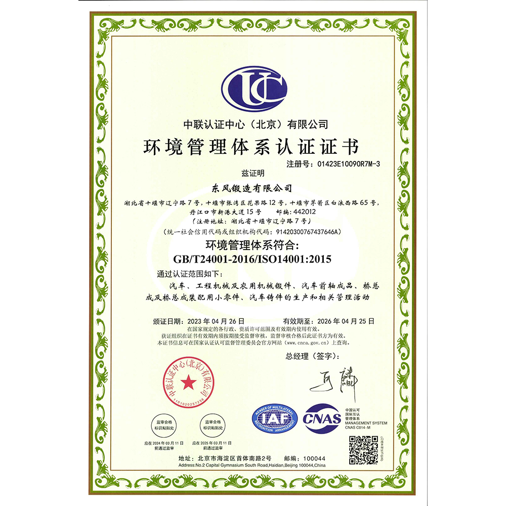 环境管理体系认证证书(中文版)