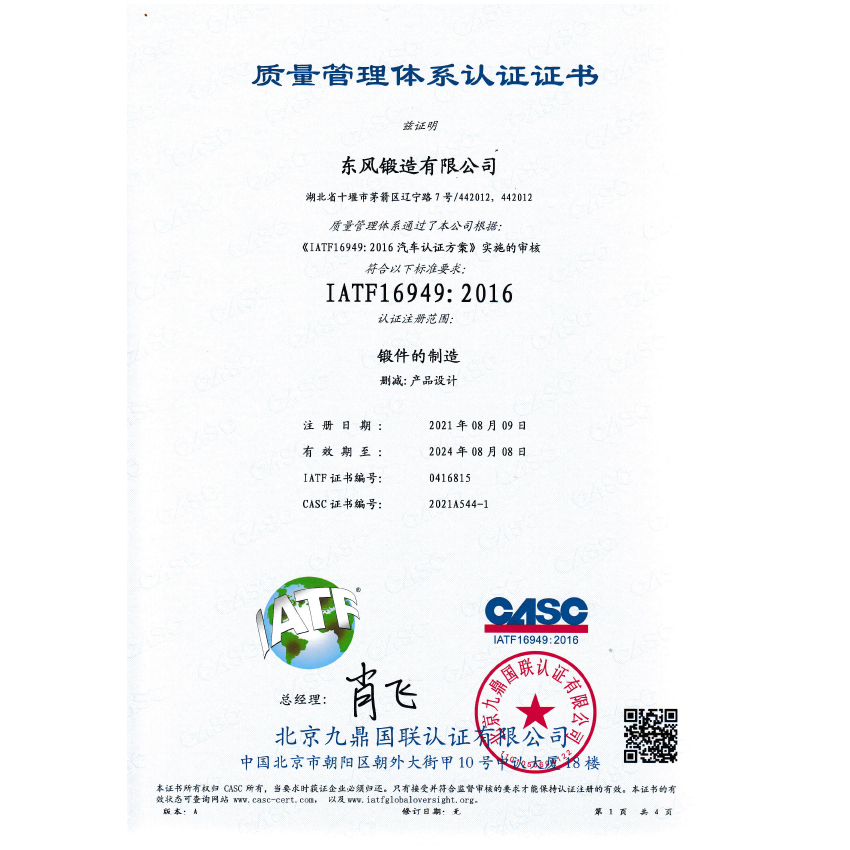 质量管理体系认证证书(中文版)