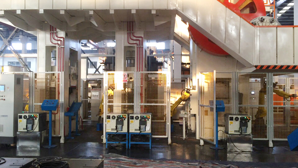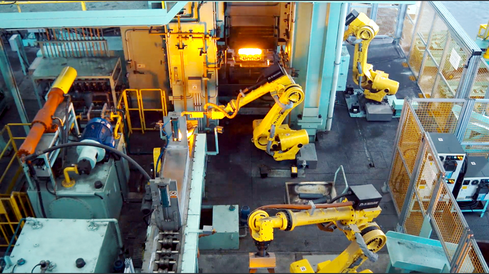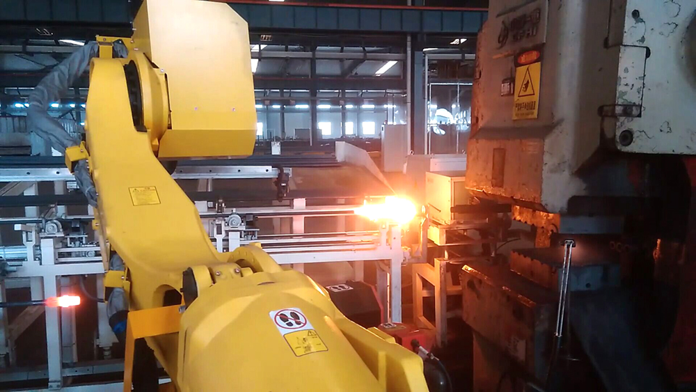 锻造自动化生产线由工业机器人、专用手爪、锻床及锻模、自动输送设备、自动喷雾设备、安全防护系统、自动控制系统等部分组成。
