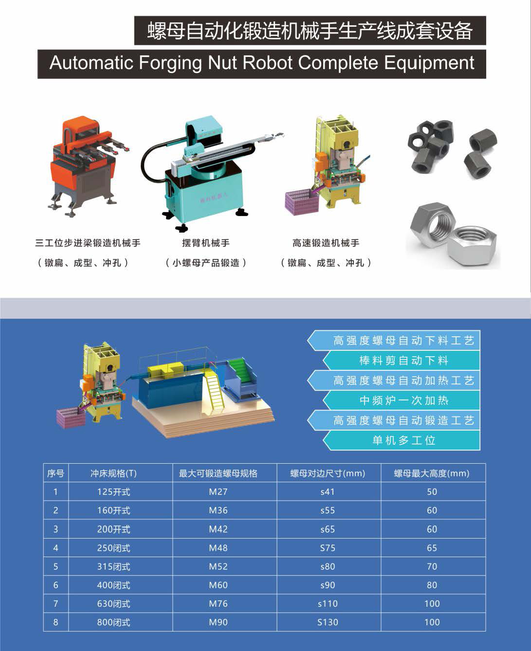 螺母自动化锻造机械手生产线成套设备