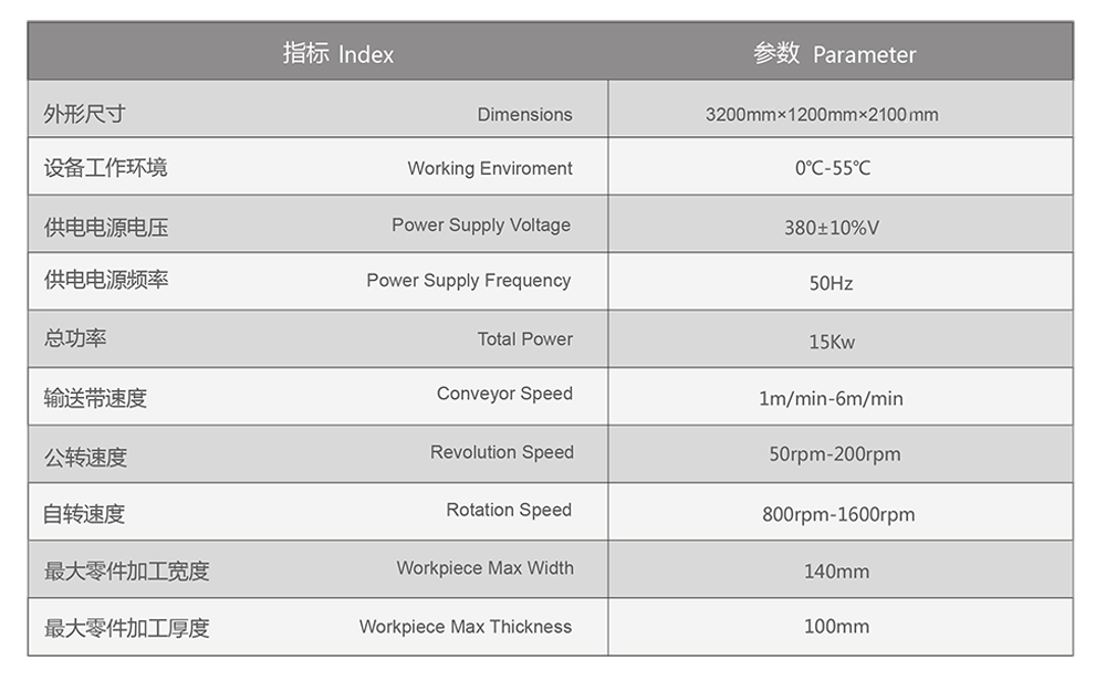 设备针对平面零件双面自动去毛刺设计。采用湿式去毛刺且自动翻面,运用过程中多动力头同时工作,动力头采用多盘刷公转自转复合运动及伺服升降控制。可均匀有效去除平面上多部位毛刺并形成均匀的圆角,自动补偿,可实现无人化操作。与前道工序自动化连接,可高效稳定去除双面铣、双面磨等典型工序所形成的毛刺。