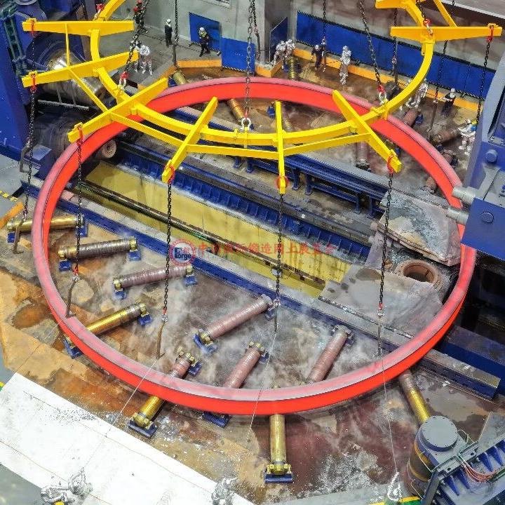 超大直径一体成形无缝轧环,该产品由伊莱特与天锻公司、沃茨公司共同研发的22米全球最大轧环轧筒机轧制成形,其中一件环件母材重143吨、外径21.029米;另一件为某四代核电工程等比例验证件,母材重量280吨、外径18.63米,可为核电项目安全运行筑牢硬件基础。
