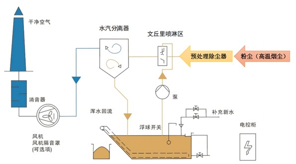 (3) 降温兼净化在除尘的同时可以降低气流温度,还可以对部分有害气体进行溶解吸收。