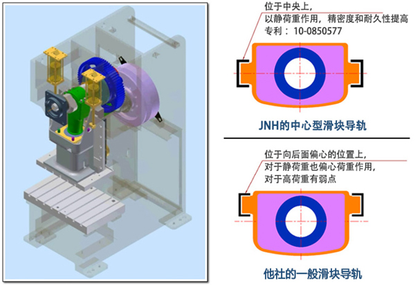 – 因偏心荷重的減小,耐久性和耐鱈損性増加而延長机1戒及模架的寿命